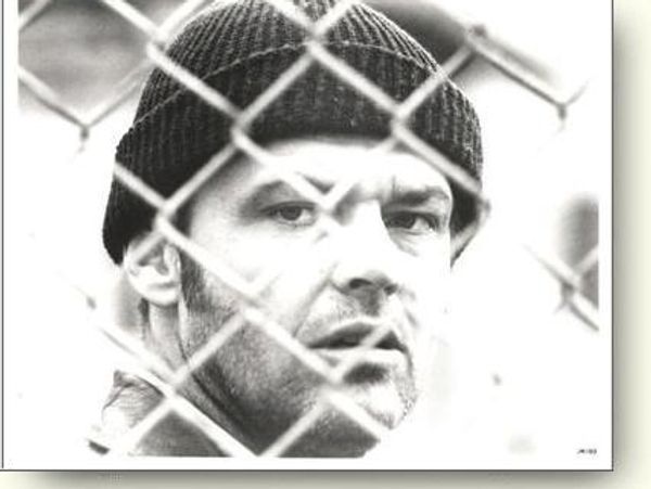 I did meet some friends at the institution, but it wasn't the same as my bond with you ,my friend. Taber, Billy Bibbit, RP McMurphy, and Chief, who was a deaf and dumb Indian as big as a god-damn tree trunk. They were just a few of my aquaintences who helped whittle the time away. I am attaching a picture of my friend RP McMurphy -- he truly turned my eyes back to God; and my release picture -- please forgive the weight gain, I hope you recognize me.